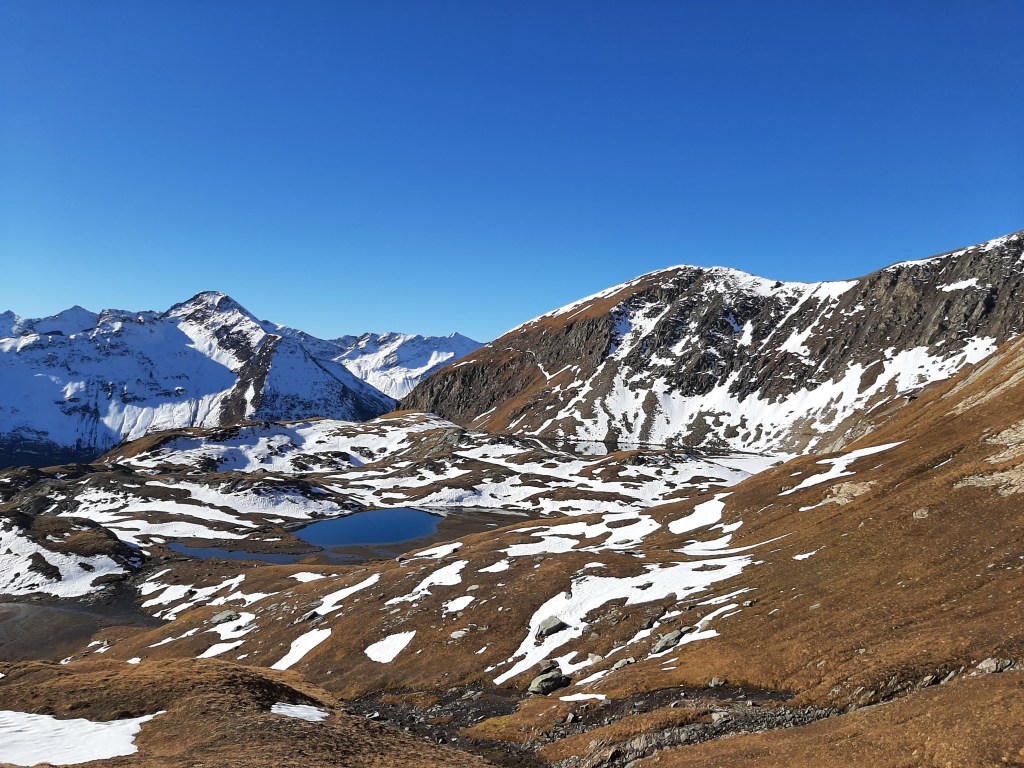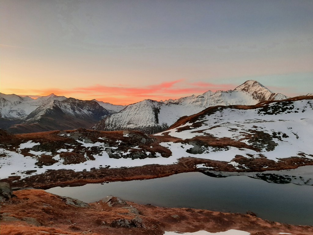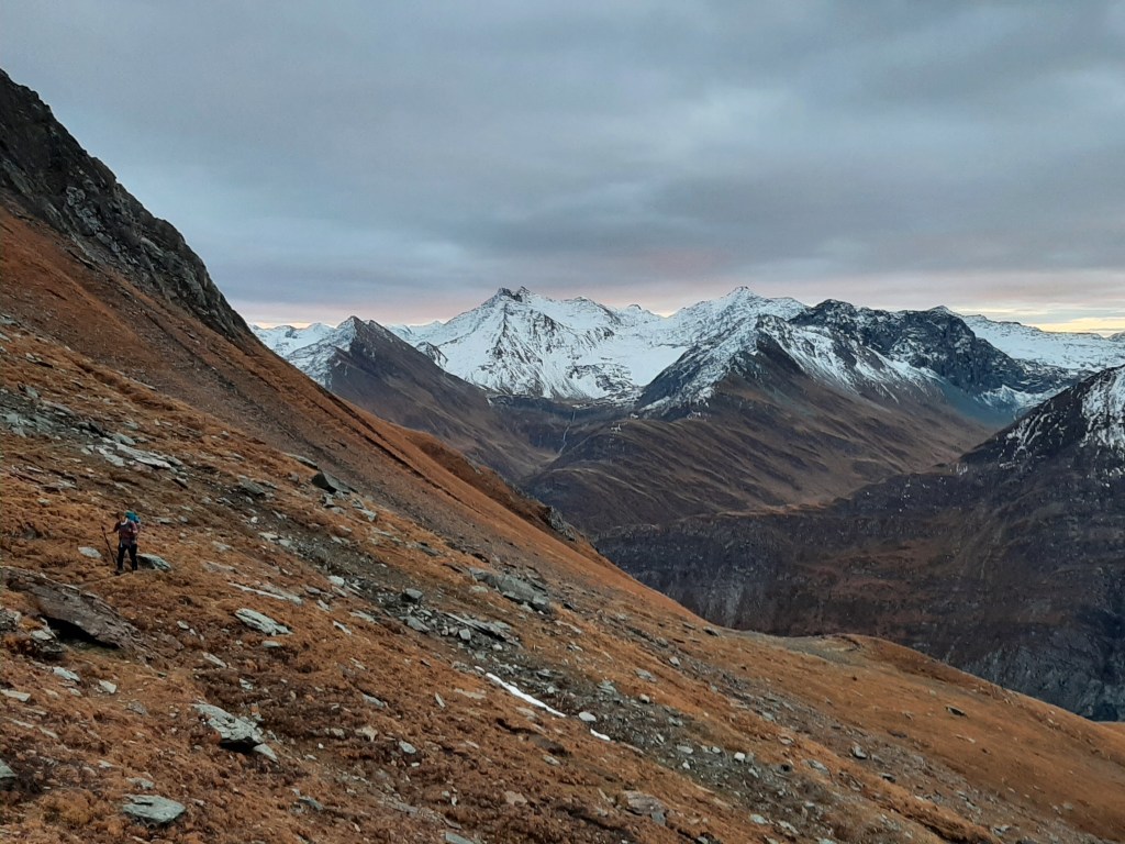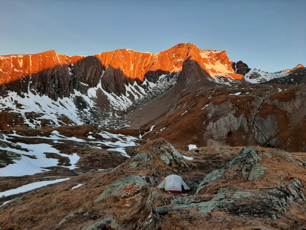 Working Saturday mornings shouldn’t prevent a weekend adventure. Setting off from Ströden Parking at about 14h30 on 15th October, we made our way off the beaten track to a collection of three small lakes in a glacial cirque. We rushed to find a suitable spot to bivouac before the last of the light disappeared. We ate dinner to the sound of, nothing. It was lovely. Around 6am we woke to a beautiful sunrise over the Lasörling Gruppe and, still in sleeping bags, enjoyed watching the orange and pink hues dance around on the clouds.