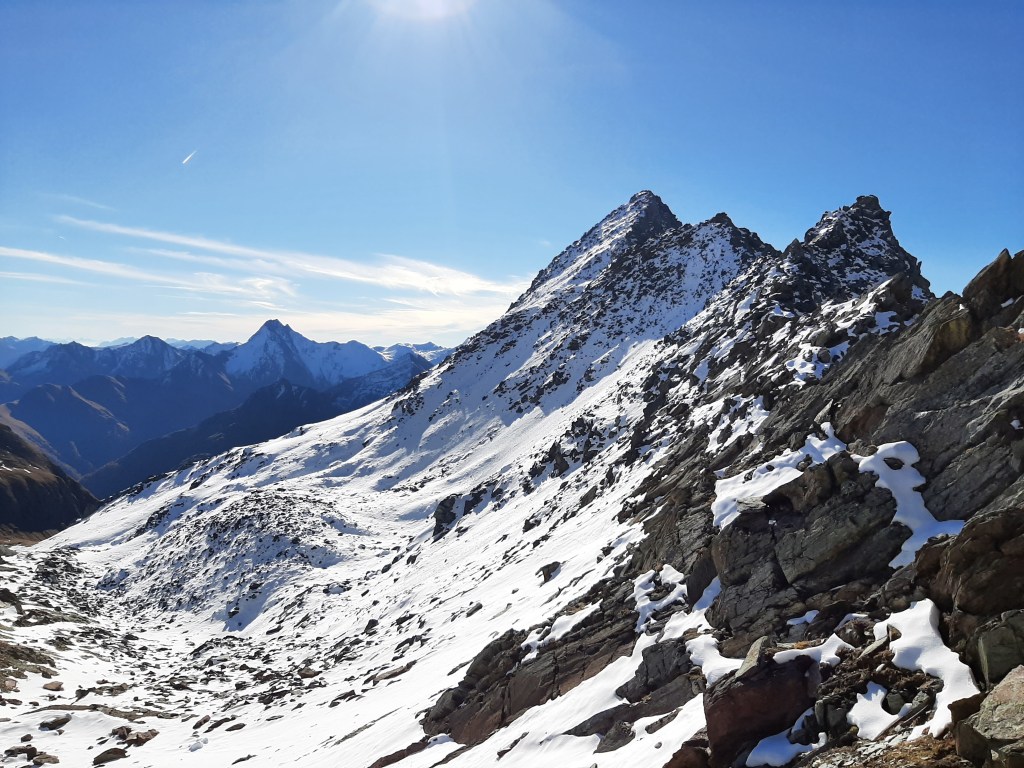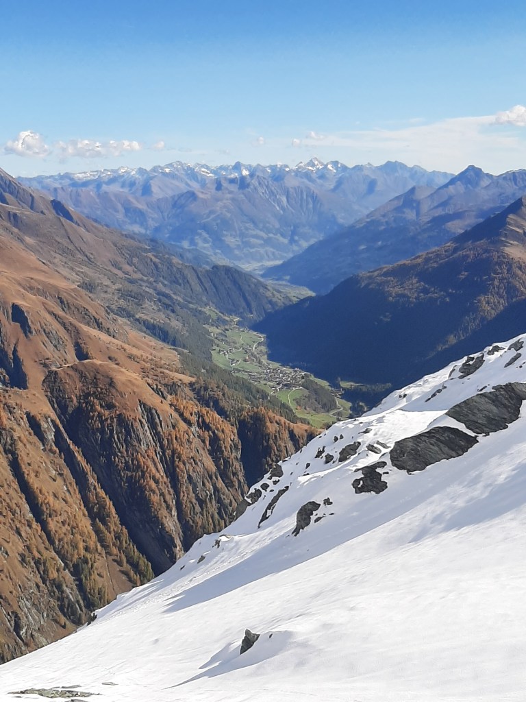 Crossing over Hockkarscharte, we were awarded with fantastic views of the glaciated Venediger mountains to the North and views straight down the Virgental to the East, with Grossglockner peeping out on the skyline a few valleys over. The initially rotten-snow covered path descended steeply into the Maurertal and we were both thankful that the snowline had retreated to above the steepest most technical section of the descent.